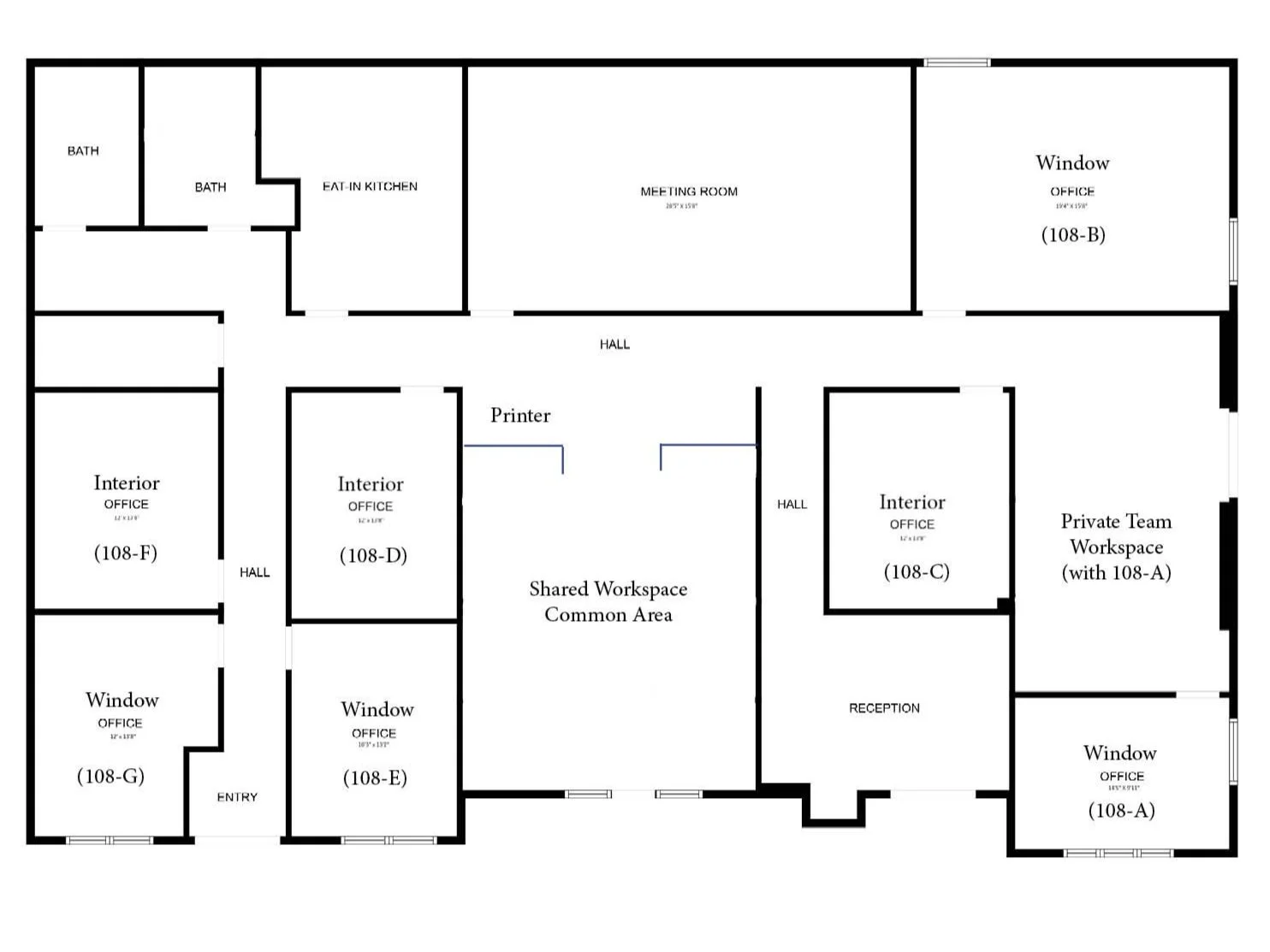 Crew CoWork in St. Augustine has 7 private office suites on property varying in size between 100-140 sq ft, some with and some without windows. Leasing terms are flexible with options ranging from 6 months to 3 years. Contact us to find out availability.